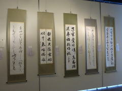 ![]() ![]() 6・7・8日の三日間に亘って 恒例の「長岡京展」が開催された。 「日本画の部」 「洋画の部」 「書の部」 「写真の部」 「工芸の部」 の五部門仕立てで 公募され それに 応募して 入賞・入選した作品だけが この会場に展示される と言う 仕組み。 会期の 最終日には 審査員のギャラリートークもあり 個々の作品が取り上げられ 作者も 一般見物人も 一緒に 解説を聞くことが 出来るようになっている。 優雅に 展示されている 夫の入賞作や 知人・友人の入賞作の前に立って それぞれの 題名と 照らし合わせながら しばしの間 見入り 写真に収めてくる。