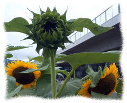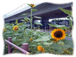 ![]() 6月の初旬から 咲き始めて 7月の初旬に満開の時期を迎えて 道行く者の 目を楽しませて くれたアガパンサスーーーー(雑感 117・7/2 ここ 雑感116・6/9 ここ )ーーーーも ひまわりの花に 場を譲った という感じ で 今は ひまわりが 見事に 咲き始めている。 さすが 「 プロの 腕 !」 で 咲く花が 途切れないように しかも 見る者の目を 楽しませて くれる に 足る花々 を 勢いよく咲かせてあって 感動の巻。 勿論 手入れ や 草抜き・ 掃除 なども 行き届いていて 感じが良い。 朝の散歩時に 日射があれば 選ばないコースなので 曇天で 風のある朝は 好んで 足を向ける。