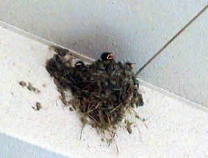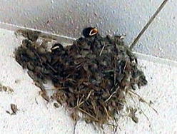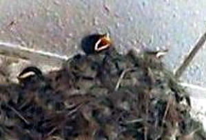 携帯で 写真を撮っている時に 丁度 親鳥が戻って来て 雛に エサを・・・・・・・ 雛は 四羽 数えることが 出来る。 親鳥が巣を離れて行った瞬間に 大きな口を開けて 次のエサを待つヒナたち。 このHPの 「雑感116」の 「6・16」の 「ツバメ」 で 取り上げた同じ巣に また ヒナが 孵っているのを 発見! 薬局の薬剤師さんに 確認してみると 「そうなんですよ~。 あちらの方の巣にも 孵っているんですよ~」 との由。 薬局から出て 二か所の 写真を撮っていると 丁度 バタバタ・・・!! と 親鳥が 帰って来て すぐにまた 飛んで 出て行った。 大慌てでシャッターをきったが うま~く 親鳥が写せていて ラッキー!! NICE!! つばめは 4月から6月にかけて 2~3度 卵を産むことがある と 言うのを 知った次第。 ========== 結構 生命力のある鳥 ======== |