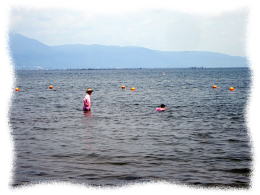 ![]() ![]() ![]() 全然、知らなかった海水浴場である。 琵琶湖大橋の東詰から 北へ向かって すぐのところに位置していて 約300mの長さの松林と砂浜が あり その砂浜に 沿った水泳場である。 日本の渚百選に 選ばれているそうで 水もきれいだし 遠浅だし 水辺で楽しむこともでき、四歳児連れには NICE!! な 海水浴場。 浜辺に お店は 一切なく 弁当持参・必要な飲食物も 全て 持参。 だが シャワー や 更衣室 や きれいなトイレ も 備わっていて 私的には まことに 気にいった次第。 バーベキュー は 禁止! 家族連れ が 主体 と言う感じで 極めて うるさくない雰囲気も GOOD! 最初は 怖がっていた四歳児も 次第に 水に慣れ 素足で歩くことにも慣れて 楽し気。 パパや ママや 一歳の妹とは 別行動なのだけれど 水中で 浮き輪につかまって プカリプカリと 浮いていたり 自然と足をバタバタとさせて 前進を楽しんだり・・・・・・で ご機嫌。 次の場所への移動があり あまり ゆっくりは 出来なかったが また ここに 来ようね という 三人共通の思いを 確認し合って 帰り支度。 湖畔にいる間中 そよそよと風が吹いて 海辺のようなべとつきもなく 居心地のよい 数時間だった。 帰途は 30分ほど走って 【竜王アウトレット】へ。 そこで パパ・ママ・妹 と 合流。 久しぶりの アウトレットを 冷やかし歩いてから 帰途に向かった。