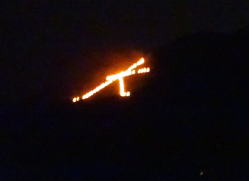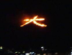 “ 秋の訪れを告げる 優美な炎 ” と言う 五山の送り火を 友人の別邸の屋上より 観賞。 13Fの屋上より 五山全てが見える ので 昨年にも お世話になったのだけれど やっぱり 今年も 同級生が集まって ミニ同窓会を 開きながらの 観賞会。 PM 9:00 頃より“ 雨 ” と言う天気予報の雨が 少し 早まって 屋上へ 移動して 間なしに パラ・パラ・パラ・・・・・・と 降り出してしまった。 カメラを片手に お盆に帰ってきた先祖の霊を送り出し、無病息災を祈りながら パチリパチリ と やる。 「右大文字」-東山如意ヶ嶽 「妙」-松ヶ崎西山-万灯籠山 「法」-松ヶ崎東山 ![]() 船形-西賀茂船山 「左大文字」-大北山 鳥居形-嵯峨鳥居本曼荼羅山 心なしか 点火間隔が 早かったように思えたのは 降り始めた雨のせいか??? 今年も 友人たちと賑やかに 楽しく 五山の送り火を 観賞できて 良かった・よかった の巻き。