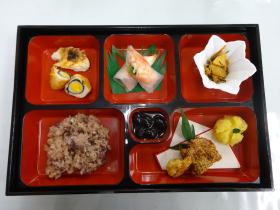 ![]() メニュー 〇 睨み鯛 〇 竜眼巻き 〇 洋風松風焼き 〇 竜眼巻き 〇 なますの生春巻き 〇 松前漬け 〇 りんごきんとん 〇 黒豆のおひねり揚げ 〇 お赤飯 お正月料理 全部で 9種類。 盛りだくさんのメニューである 。 結構 手は込んでいたのだが 担当の先生の 手際のよい進行ぶりで 二時間後 位までには 全て 出来上がり となり お正月料理らしい器に 盛り付けられて 後は 試食のランチタイム。 一品ずつ なかなかの 存在感と美味しさ で NICE!! 普段用にも 活用できるメニューがあるので 取り敢えずは それから・・・・・・・・となりそう。