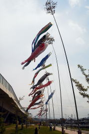 ![]() 計15体の この鯉のぼりたちは、隣接する大山崎町の 小倉神社の 春祭りに合わせて 下海印寺氏子青年会が 飾っているもの。 長岡京市にも氏子が 大勢おられて、「御旅所」もあり 今も 伝統行事が 守られている との由。 小倉神社の祭りは 5月3~6日に行われ、鯉のぼりは 7日まで飾られる と 検索。 青竹を使った大型の鯉のぼり である。。 下海印寺西条交差点の辺りから 小泉川沿いを 150メートルほどにわたっての 長岡京市の 春の風物詩的 存在。 日々の ウオーキングのコースの 一部。 上を見ながら 大きく 深呼吸!! の エリア。