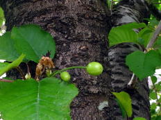 ![]() ![]() 2017年には 小さな ざるに ほぼ 1杯・・・40~50個・・・くらいの 熟した チェリーが 収穫できた。 のだが 剪定したのが 原因か 以来 数粒止まりの 収穫にしか ならない。。 葉が茂り 花も 結構 咲く年も あるのだが 結実には 結びつかない という 残念な 状況。。 今年は 1個だけ 大粒チエリ―が 残っていて 成長し 赤みも 帯びてきて 楽しみ たのしみ というところ。。。。。。。。 ー―――― 大切に 見守っている ーーーーーー