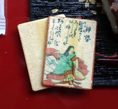 ![]() いつも行く 近くのスーパーで お正月の 福袋を 数個 ゲット。 それぞれに 魅力を感じて 買ったのだが 特に 気に入ったのは、 竿菓子1本と もなかのかわ、5組分とが 1箱に セットになって 入っていて、 食べる時に 好きな厚さに切った竿菓子を 挟んで食べる というスタイル のもの。 つまり、竿菓子の部分が “最中種” というわけである。 もなかのかわの 表の面・1枚ずつに 百人一首カルタの絵柄が カラーで 描かれていて わずか、4cm弱 と 5センチ強の 小さなサイズなのに 詠み人と 詠んだ歌とが きっちり、画かれていて なかなかのもの(!!) なのである。。 お正月らしい 雰囲気があって 和菓子らしく ナイスな デザイン と 大いに 気に入ってしまった次第。 ショリショリの食感の最中部と 挟まれている あんことおもちの 上品に 甘く とろけるような食感が 何とも 程よく マッチして 美味~~!!~~ という 感じ で 大の お気に入り。
