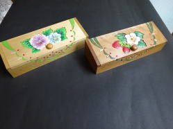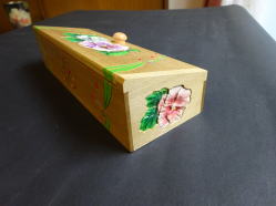 6月の 教室展の時の、課題作としての小箱は、いちご柄で(ここ の 6月1日)仕上げた。 その後、パンジー柄で もう一つ仕上げて、11歳児と8歳児に プレゼント。 名前のイニシャルの『 A 』 と 『 H 』 も、彫って それぞれに。 あまり、大きくないサイズなので ( 横・・23cm 奥行・・7、5cm 高さ・・4~5,5cm) 中に、容れられるものは、限られる。 蓋を 開けた裏側にも、少しだが 彫りがあって、楽し気に作ったつもり。 私としては、多色使いの作品は、極めて 少ないので、違った思い入れがある。 二人が、身近に置いて、好きな小物入れ として、使ってくれたら、私は 満足・まんぞく。 |