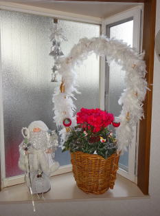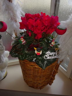 ![]() 玄関の出窓の サンタさんの横に飾る、シンピジウムの花を、探したが 今年は、夏が、暑かったせいか 品薄・・・・・ とか で、どの店に行っても、 わずかな、鉢数しかなくて、形・色・サイズ・雰囲気・・ が、いまいちなものばかり。 で、 シンピジウムは 諦めることにして 無難に、シクラメンの、豪華で、ステキな鉢植え に 変更することに。 鮮やかな赤色で、花弁に 少し フリル状のヒラヒラが、あるものを チョイス。 白いサンタさんと並べて ま、良し とするかの巻き。