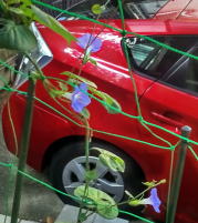 ウォーキングの時とかで、他家や、公園のフェンスとかに、咲いている朝顔を見ても