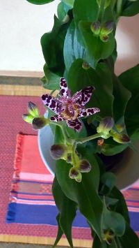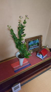 姉宅の 床の間に飾られた、ホトトギスの生花。