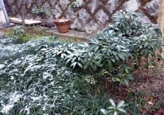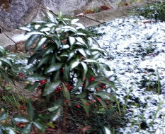 昨日来、大雪の予報が ず~~~~~と出ていて、大いに、気にしていたのだが 奇しくも、昨2023・1・25 と、 同じ日付の日に ”雪景色”に お目にかかる 事態となった。 勿論、昨年の 1月25日のホームページにも 写真付きで( ここ p2-207 ) とり上げている。 今年の場合、う~~んと、積雪の量は少ないのだが、それでも、”雪景色の風情”は、 なかなかのもので やっぱり、写真を撮り、ホームページに掲載したくなってしまう。 赤や 黄色の 色の対比が楽しめる、万両が植わっている界隈が、 印象強く 目に入ってくる。 被災があり、難儀を余儀なく 受けざるを得ない 状況があるのを、各報道機関の情報で、 受けている 厳しい事実 も認識しながら、 まだ、時折、チラリ ・ ホラり ・・ チラチラ・・・・と 雪が舞っている今日の午後は とても 、寒いのだけれど、しっかり、存分に 成り行きを、見つめたい。