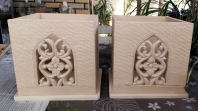 前面は、抜きのある唐草柄 で 他3面は 同じ柄の唐草柄の 浮き彫り という仕立てに