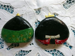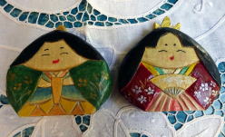 幅・・ 24 ㎝ 高さ・・15㎝ 奥行き・・12.5㎝ 雄雛 ・雌雛の 幅 7.5㎝ 高さ 7㎝ 厚み 2㎝ 久しぶりの ’着色’の 「雛飾り」。 今、雛飾りの時期には、大きく はずれているが、かわいいのが 仕上がった。 来年の、お雛祭りの時期には、すぐさま 取り出してきて・・・・・・・である。 着色には、いつものことながら、大いに、難儀して、先生に甘えてしまうのだが、 出来上がりには、大満足!! 我が家の二階には、七段飾りのお雛様が、箱に保管してあり、その時期に きちんと、飾れば、素晴らしく、見栄えも よく、部屋中が、「お雛様ムード」に 満たされて、味わい深いものに なるのだが、「飾りつけ」 や、「おかたづけ」の 手間暇を 考えると、う~~~~~ん!! という感じになってしまう。 その点、今回の 完成作の「雛飾り」は、小さな紙袋に、収まってしまうくらいのサイズだし、 出し入れも ・・・・・・・・・・・ で 期待がもてる感じである。 木製で、取り扱いも、気を使わなくても、良い感じ だし 。 |