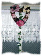 ![]() 今年度、第一回目のフラワーアレンジメントのレッスンである。 まだまだ、お正月用の生花が、勢いもよく、美しいので、1月は、アート・バージョンで、 予約を入れていた。 X’masの卓上用のアレンジメントにも使った♡型のリースを使用しての、今日の、「バレンタイン・ アレンジメント」である。 リースに、素材をどんな風に置いていってもよい ということなので、素材を 万遍無く ハート型に配置して行くというやり方は、あえて、やめて、グルーピング方式をとることに 決めた。 結果、ま、何とか、お洒落(?)な感じに仕上がって、 “良かった・良かった” で あったのだが。 持ち帰って、私の部屋に、吊るしておいたら、 やって来た娘が見て、「あっ!! カワイイ!!!」と、感想を・・・・・・・。 でも、 「欲しい!!!。」とは、言わなかったなぁ・・・・・・・(^・^)・・・・・・・・