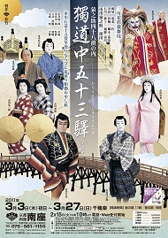 鶴屋 南北 作 市川猿之助 演出 猿之助四十八撰の内 「獨道中五十三驛 (ひとりたびごじゅうさんつぎ)」 ーーーー 市川右近十五役早替りならびに宙乗り相勤め申し上げ候 ---- 「京都・三条大橋」を振り出しに 「お江戸・日本橋」 までの、492㎞の道中。 十五役の早替り や 化け猫の怪奇・宙乗り や 海中の立ち廻り など、見せ場の連続 の舞台。 また、「国民文化祭京都2011」のマスコットキャラクター「まゆまろ」の出演もあり、話題満載。 2002年2月に 市川猿之助二月大歌舞伎として 「南総里見八犬伝」を大阪松竹座で 2008年5月に スーパー歌舞伎として、「ヤマトタケル」を やはり、大阪松竹座で 観賞した。 今回は、京都四条南座での公演を観賞。 「澤潟屋」の面々の スピーディーなストーリー展開に基ずく演技、テンポのよい演技を、 三列目・正面の座席から 観賞。 「早替り」、「宙づり」 も、さることながら、「だんまり」 という演出も とても、効果的・印象的だった と思う。 いつものように、イヤホーンガイドに 解説されての、四時間余りを しっかり 楽しんできた。 帰途、「いい所がある」という姉に誘われて 木屋町筋の喫茶店へ。 若かりし頃、何回か、来たことのある喫茶店「ソワレ」に、姉と妹と三人で テーブルを挟み、 そこのオーナーのコレクションに、目を見張り、ウインナーコーヒーと、何とかいう カラフルゼリーの ヨーグルト(?)を 賞味してきた。 ![]() ----Happy Day !ーーーー
